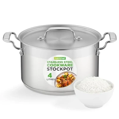 5 LITRE CAPACITY – NutriChef stainless steel large cooking pot holds 5 litres, perfect for boiling eggs, simmering stocks, soups or making sauces for family and commercial use. Ideal for home cooks and chefs alike. ERGONOMIC HANDLES – Features stainless steel ergonomic handles for a comfortable grip. Mirror-polished exterior with matte interior adds a sleek, modern touch to your cookware collection. FOOD-GRADE 18/8 STAINLESS STEEL – Made with non-reactive, non-toxic 18/8 stainless steel interior. Impact-bonded base (3mm thickness) ensures even heat distribution for consistent cooking results. STAINLESS STEEL LID INCLUDED – Comes with a matching lid that locks in flavour and retains heat. Safe for cooking up to 260°C. Perfect for stews, soups, lobster, corn on the cob and more. INDUCTION AND HOB COMPATIBLE – Suitable for electric, gas, induction, ceramic, hot plate and halogen cooktops. Dishwasher safe, though hand washing is recommended to keep the stainless steel looking new., Weight: 3.527396192 Pounds, Manufacturer: NutriChef