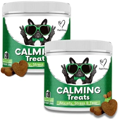 NutriPaw Calming Treats For dogs Reduce Stress, Fear, Separation Anxiety, Barking, Hyperactivity, Reactivity, Aggression, Travel Issues Relaxation without Drowsiness Twin Value Pack