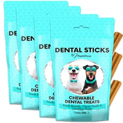 NutriPaw Dental Sticks For Dogs Clean Teeth, Healthy Gums & Fresh Breath Manage Plaque Tartar Build Up Meaty Taste 4 Week Pack