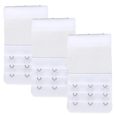 Bra Extenders Set Measurements:Contains one Size, 9.7x 5.5 cm.The women bra strap extenders are designed 3 rows of 3 hooks. 3 Rows x 3 Hooks Size: 9.7x 5.5 cm,The hooks distance is about 1.9cm. Made of 100% polyester Wide Usage:The bra extenders are great for you adjust your bra size,While your bra are too tight,It keep your bra in place well,Not easy to come off. The bra strap extender could add more extra space for your bra during pregnancy, breastfeeding, weight gaining. The bra strap extender have one color(white),Comes with one sizes,It could meet your daily need,and you could choose suitable size and color as per your bras.Saved your money from order new bras.