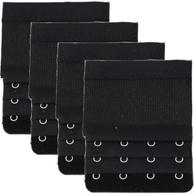 Bra Extenders Set Measurements:Contains One Size, 9.7x 7.5 cm;The women bra strap extenders are designed 3 rows of 4 hooks . 3 Rows x 4 Hooks Size: 9.7x 7.5 cm,The hooks distance is about 1.9cm. Made of 100% Polyester Wide Usage:The bra extenders are great for you adjust your bra size,While your bra are too tight,It keep your bra in place well,Not easy to come off. The bra strap extender could add more extra space for your bra during pregnancy, breastfeeding, weight gaining. The bra strap extender have one color(black),Comes with one sizes,It could meet your daily need,and you could choose suitable size and color as per your bras.Saved your money from order new bras.