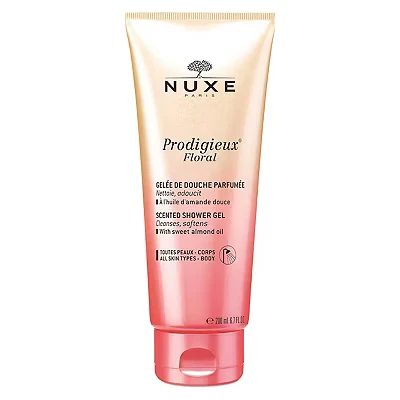 Nuxe Prodigieux Floral Scented Shower Gel 200ml gently cleanses skin with a botanical base and sweet almond oil, leaving it soft and supple. Its rich texture and delicate floral scent—featuring grapefruit, magnolia, and musk—create a luxurious daily ritual for fresh, pampered skin.