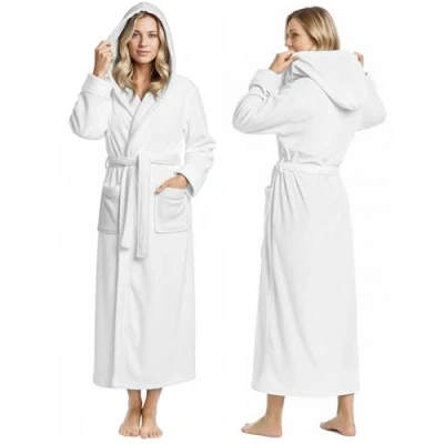 NY Threads Women Fleece Hooded Bathrobe Plush Long Robe, White, XL