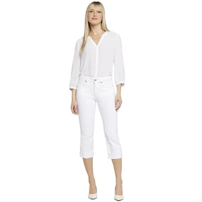 NYDJ Women's Marilyn Straight Cuff Cropped Slimming Jeans, Optic White, 12