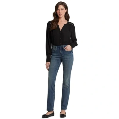 STRAIGHT LEG JEANS FOR WOMEN: The easy, figure-elongating construction of the NYDJ Marilyn Straight Jeans pairs well with everything, thanks to a flattering waist, higher rise, and versatile straight-leg fit. EXCLUSIVE LIFT TUCK TECHNOLOGY: This unique technology uses a proprietary slimming panel with a patented crisscross design to shape and support your curves for an always-sleek silhouette. It will lift, slim, and flatten in the front for a flattering fit. MEASUREMENTS: Inseam runs 32 inches, front rise is 9.75 inches, with a leg opening of 16 inches. Due to the Lift Tuck Technology, select one size down from what you normally wear for the best fit. CLASSIC DESIGN: Finished with five-pocket styling, a zip fly, and a button closure, these straight jeans for women are timeless and versatile, so you can wear them with all your tops from season to season. EASY TO CLEAN: Keep your slimming straight jeans in their best condition by machine washing in cold water and line drying. 67% Cotton, 31% Elastomultiester, 2% Elastane.