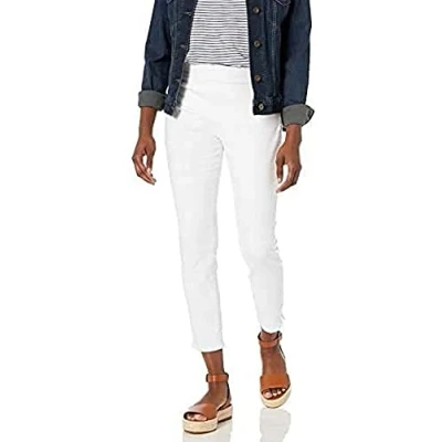 NYDJ Women's Petite Skinny Ankle Pull on Jeans Slimming & Flattering Fit, Optic White, 10