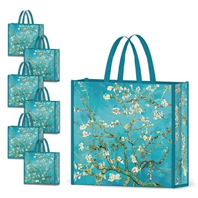 UNIQUE DESIGN: The patterns of NymphFable shopping bags are designed exclusively. Vivid almond blossoms pattern on blue bag body, this beautiful and elegant style makes our shopping bag a perfect gift for women and girls! STRONGE & DURABLE: Made of non woven, those grocery bags are well stitched, wear resistant, stronge and durable enough to hold more than 50 pounds, long sturdy handles allow for hand holding or carrying on shoulders. Ideal for shopping, groceries, travel, storage. LARGE CAPACITY & USEFUL: Size in 17.7"x15.7"x5.2", the large grocery tote bag can hold lots of groceries, like clothes, books, canned food and other stuffs. It is also a great gift bag, just put your gifts into this roomy bag, and you’re ready to gift. REUSABLE: Our shopping tote bags are made of non-woven, safe, pollution-free and reusable.You can reuse those sustainable bags, reduce your carbon footprint and plastic usage. This is a small step towards minimizing disposable plastic. MULTIPLE USES: Our eco green shopping bags can be used for daily shopping or storage, or seaside holidays, travel, camping etc. It is also a great choice as a present to your family, friends, co-workers or anyone you love.