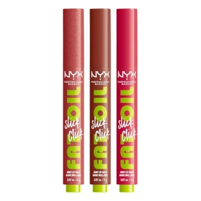 NYX Professional Makeup Fat Oil Slick Click Trio, Shiny Lip Balm, 12 Hour Hydration, Lightweight, Vegan, 3 Piece Set