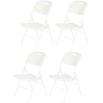 Versatile for Indoor & Outdoor Use - Whether you're styling a sunlit patio or adding practical seating to a kitchen corner, this white folding chair delivers comfort, style, and durability in any setting. Designed to be used both indoors and outdoors, it brings maximum flexibility to your living space. Use it in dining areas, balconies, home offices, gardens, cafés, or event venues—the clean white design complements nearly any environment. Unlike bulky indoor chairs or fragile garden furniture, this chair offers the best of both worlds: indoor elegance with outdoor toughness. Built-in Water Drainage for All-Weather Performance - When used outdoors, water can ruin even the best chairs—but not this one. A discreet built-in water drainage system allows rain to pass through the seating area, keeping the surface dry and free from pooling water. It’s perfect for garden patios, balconies, terraces, or cafés where furniture may be left outside. Indoors, this feature remains discreet and doesn’t impact comfort or appearance, but outdoors it’s a game-changer: no tipping chairs, no drying with towels. You’ll always have a seat ready, rain or shine. This feature extends the chair’s lifespan and ensures your seating is always welcoming—regardless of the weather forecast. Lightweight Yet Sturdy (4.3KG per Chair) - With a net weight of just 8kg, Weight Capacity of 150kg, this chair strikes a balance between portability and stability. It’s light enough to carry around the home or rearrange for gatherings, yet strong enough for daily use in both home and commercial settings. Its minimalist frame supports full-size seating without looking bulky. Indoors, it fits beautifully in tight dining spaces or spare rooms. Outdoors, its sturdy frame withstands the elements with ease. Whether you’re furnishing a small kitchen or setting up a rooftop event, you’ll appreciate how easy this chair is to lift, move, and position—without compromising on durability. Folds Flat for Easy Storage - Storage problems? Solved. This chair folds down flat in seconds, letting you reclaim space when needed. Ideal for seasonal use, events, or everyday flexibility, the chair stores compactly with a folded box size of 47×18×111 cm. Tuck it behind a door, under a bed, or in a closet—its smart folding design makes it perfect for smaller flats, garden sheds, or event organisers managing large inventories. Indoors, it’s a quick way to add seating without clutter. Outdoors, it’s your go-to solution for pop-up entertaining. Simply unfold, place, and relax—this chair adapts to your lifestyle. Modern White Aesthetic for Any Décor - With its sleek white finish, this chair adds a clean and modern look to any environment—indoors or out. Whether you’re matching it with wood floors, tiled patios, or concrete terraces, the neutral colour provides versatility that works with virtually any palette. White is not only elegant but also practical: it reflects heat better than darker colours and visually brightens any space. Easy to keep clean and maintain, this chair resists dirt and UV fading, staying fresh and inviting with minimal effort. From modern minimalist interiors to rustic outdoor gardens, this chair looks right at home. Ergonomic Comfort with Functional Dimensions Comfort meets practicality in this chair’s thoughtful design. With a height of 87cm, width of 45cm, and depth of 49cm, it offers a spacious and supportive seat whether you're dining, reading, or chatting. The backrest encourages natural posture, while the seat depth provides ample room for relaxed sitting—perfect for both casual meals and long evenings outdoors. Unlike many foldable chairs, this one doesn’t compromise comfort for portability. Whether placed at a dining table or on a garden lawn, it delivers an inviting, ergonomic seat you’ll enjoy every day. Its universal size also matches most indoor and outdoor tables.