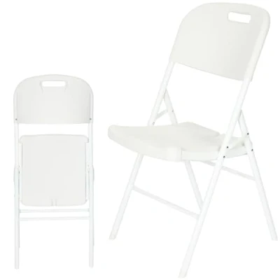 Versatile for Indoor & Outdoor Use - Whether you're styling a sunlit patio or adding practical seating to a kitchen corner, this white folding chair delivers comfort, style, and durability in any setting. Designed to be used both indoors and outdoors, it brings maximum flexibility to your living space. Use it in dining areas, balconies, home offices, gardens, cafés, or event venues—the clean white design complements nearly any environment. Unlike bulky indoor chairs or fragile garden furniture, this chair offers the best of both worlds: indoor elegance with outdoor toughness. Built-in Water Drainage for All-Weather Performance - When used outdoors, water can ruin even the best chairs—but not this one. A discreet built-in water drainage system allows rain to pass through the seating area, keeping the surface dry and free from pooling water. It’s perfect for garden patios, balconies, terraces, or cafés where furniture may be left outside. Indoors, this feature remains discreet and doesn’t impact comfort or appearance, but outdoors it’s a game-changer: no tipping chairs, no drying with towels. You’ll always have a seat ready, rain or shine. This feature extends the chair’s lifespan and ensures your seating is always welcoming—regardless of the weather forecast. Lightweight Yet Sturdy (4.3kg) - With a net weight of just 8kg, Weight Capacity of 150kg, this chair strikes a balance between portability and stability. It’s light enough to carry around the home or rearrange for gatherings, yet strong enough for daily use in both home and commercial settings. Its minimalist frame supports full-size seating without looking bulky. Indoors, it fits beautifully in tight dining spaces or spare rooms. Outdoors, its sturdy frame withstands the elements with ease. Whether you’re furnishing a small kitchen or setting up a rooftop event, you’ll appreciate how easy this chair is to lift, move, and position—without compromising on durability. Folds Flat for Easy Storage - Storage problems? Solved. This chair folds down flat in seconds, letting you reclaim space when needed. Ideal for seasonal use, events, or everyday flexibility, the chair stores compactly with a folded box size of 47×18×111 cm. Tuck it behind a door, under a bed, or in a closet—its smart folding design makes it perfect for smaller flats, garden sheds, or event organisers managing large inventories. Indoors, it’s a quick way to add seating without clutter. Outdoors, it’s your go-to solution for pop-up entertaining. Simply unfold, place, and relax—this chair adapts to your lifestyle. Modern White Aesthetic for Any Décor - With its sleek white finish, this chair adds a clean and modern look to any environment—indoors or out. Whether you’re matching it with wood floors, tiled patios, or concrete terraces, the neutral colour provides versatility that works with virtually any palette. White is not only elegant but also practical: it reflects heat better than darker colours and visually brightens any space. Easy to keep clean and maintain, this chair resists dirt and UV fading, staying fresh and inviting with minimal effort. From modern minimalist interiors to rustic outdoor gardens, this chair looks right at home. Ergonomic Comfort with Functional Dimensions Comfort meets practicality in this chair’s thoughtful design. With a height of 87cm, width of 45cm, and depth of 49cm, it offers a spacious and supportive seat whether you're dining, reading, or chatting. The backrest encourages natural posture, while the seat depth provides ample room for relaxed sitting—perfect for both casual meals and long evenings outdoors. Unlike many foldable chairs, this one doesn’t compromise comfort for portability. Whether placed at a dining table or on a garden lawn, it delivers an inviting, ergonomic seat you’ll enjoy every day. Its universal size also matches most indoor and outdoor tables.