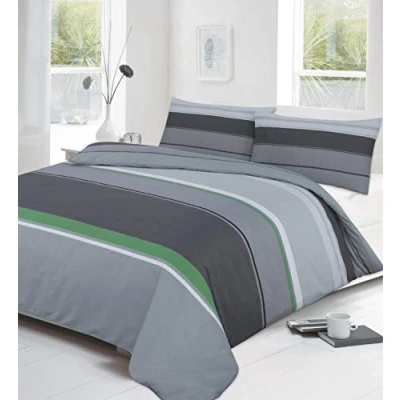 NZ Carter Stripes Pattern Luxurious Modern Style Duvet Cover Sets Reversible Bedding (Grey, Double)