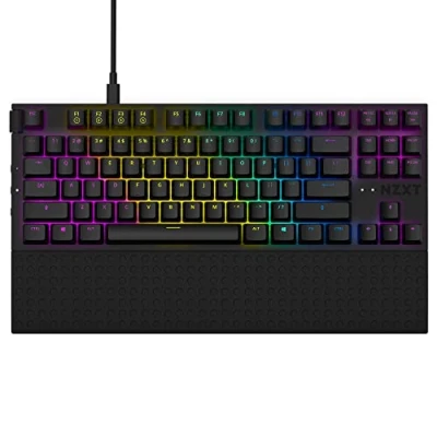 NZXT USB Function TKL Tenkeyless Gaming Keyboard Gateron Red Mechanical Switches: Linear, Fast, and Quiet Hot Swappable RGB Backlit Aluminum Top Plate Wrist Rest Black