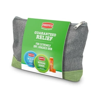 GIFTPACK WASHBAG: Contains three of O'Keeffe's hardworking skincare products for hands, feet, and lips, in a splash proof washbag, making it the perfect gift for someone special, for travelling or as an introduction to O'Keeffe's. WORKING HANDS: O'Keeffe's Working Hands is a highly-concentrated, non-greasy hand cream developed to hydrate and relieve dry skin to provide long-lasting moisturisation for even the most severe cases of dry, cracked hands. LIP REPAIR: Clinically proven to provide all-day moisture with just one application. O'Keeffe's Lip Repair creates a flexible barrier that helps keep dry, cracked lips moisturised and hydrated. GUARANTEED RELIEF: We know you’ll love our products, but if you are dissatisfied for any reason, we will refund your purchase with a voucher of equivalent value (terms and conditions apply). Visit our website to make a claim and for further information.