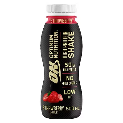 Delicious high protein shakes ready to drink from Optimum Nutrition, the alternative to your daily protein bar Improve muscle gain and contribute to the maintenance of muscle mass and normal bones** 50 g of protein per 500 ml shake, low fat, no added sugars. Contains naturally-occurring sugars Can be consumed at any time during the day as a protein snack or can be a perfect post-training shake Convenient packaging for travel, gym and work Available in three tasty flavours: vanilla, strawberry, chocolate