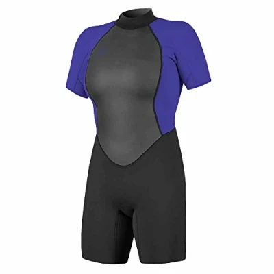 O'Neill Women Reactor II 2mm Back Zip Shorty Wetsuit Black Cobalt 12