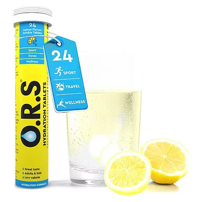ELECTROLYTE HYDRATION TABLETS: Our original soluble tablets add a mix of oral rehydration salts & electrolytes to water, for optimum fluid balance so you stay hydrated for longer; a functional dose of glucose delivers energy, supporting a balanced diet through winter A VERSATILE HYDRATION TABLET: Your go-to solution & travel essential to hydrate on holiday; relief from dehydration when travelling, fasting, running, cycling, or to support sports performance, post workout recovery & winter wellness RAPID & EFFECTIVE REHYDRATION: Clinically proven for fast & effective electrolyte replacement; backed by science & the World Health Organization for a healthy & safe formula; the best reliable supplements to rehydrate & fuel your body VEGAN, GF & LOW-CALORIE: ORS is a low-calorie (17 kcal) liquid hydration solution for both adults & kids' nutrition; trust in our naturally-flavoured, vegan, gluten-free, lactose-free & halal formula BEST TASTING EFFERVESCENT SPORTS SUPPLEMENT: Drop 2 dissolvable tablets in 200 ml drinking water, dissolve & drink the delicious electrolyte solution to hydrate; 1 tube contains 24 juicy fizzy Lemon tablets