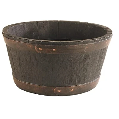 OAK LIKE BLACKSMITH BARREL PLASTIC PLANTER PLANT POT TUB GARDEN PATIO OUTDOOR