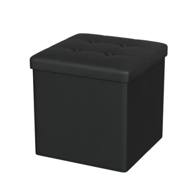 Oak & Tea PU Leather Storage Ottoman, Foldable Seat Stool with Storage, Small Cube Footrest Pouffe, Compact Bench for Living Room, Bedroom, 30x30x30cm, Black