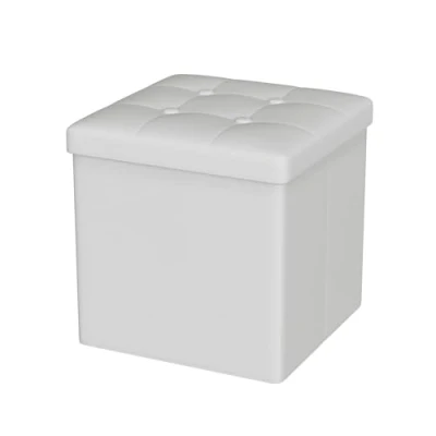 Oak & Tea PU Leather Storage Ottoman, Foldable Seat Stool with Storage, Small Cube Footrest Pouffe, Compact Bench for Living Room, Bedroom, 30x30x30cm, White