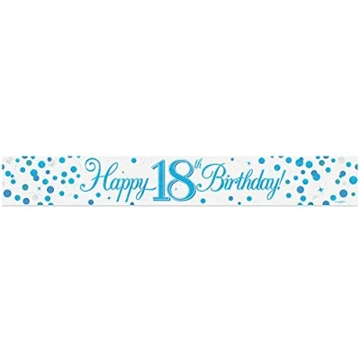 Happy 18th Birthday Sparkling Fizz Blue Holographic Foil Banner Approx. Length 2.7m - Width 13cm Printed on one side Text repeated 3 times Combine with other Oaktree Sparkling Fizz Blue Party Products (Foil Balloon, Bunting), Manufacturer: Oaktree UK