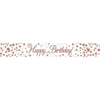 OakTree 9ft Banner Sparkling Fizz Birthday White & Rose Gold Holographic,2.7mx13centimeter