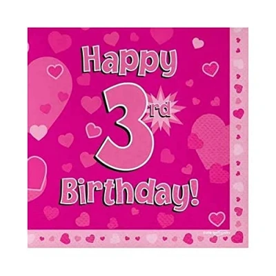 Oaktree Happy 3rd Birthday Pink 33cm x 3 ply Napkins 16pcs