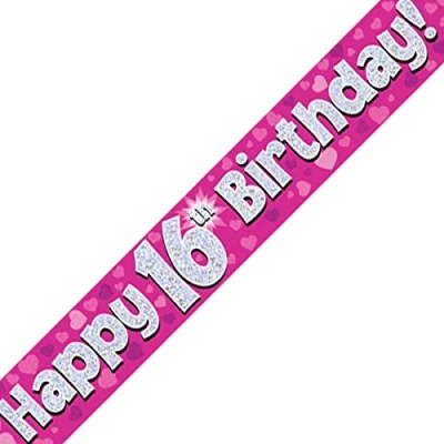 Oaktree Ltd Happy 16th Birthday Banner, Foil, Pink, 270 x 12 0.1 cm