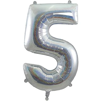 Oaktree UK 34" Number 5 Holographic Silver foil balloon 34" / 86cm when inflated with helium or air. Holographic pattern on both sides of this stunning balloon. Can be used with another Oaktree Holographic Silver Number to celebrate a milestone birthday or special occasion UK Designed and Manufactured., Manufacturer: Oaktree UK Ltd