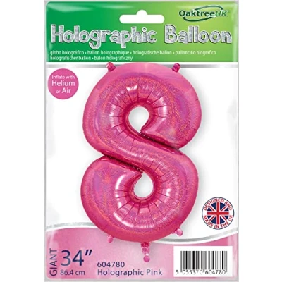 Oaktree UK 34" Number 8 Holographic Pink foil balloon. 34" / 86cm when inflated with helium or air. Holographic pattern on both sides of this stunning balloon. Can be used with another Oaktree Holographic Pink Number to celebrate a milestone birthday or special occasion UK Designed and Manufactured., Manufacturer: Oaktree UK Ltd