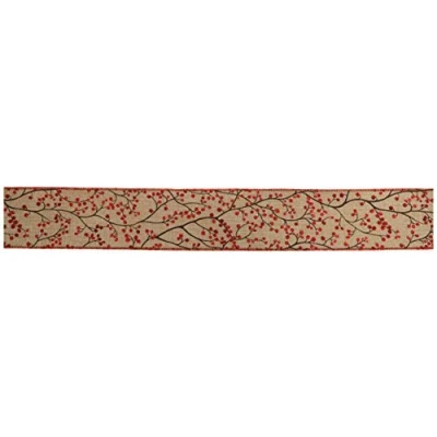 Eleganza Wired Edge Christmas Glitter Berries 63mm x 9.1m Design No.376 Natural/Red