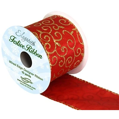 Oaktree UK Eleganze Festive Ribbon Satin Glitter Filigree Gold