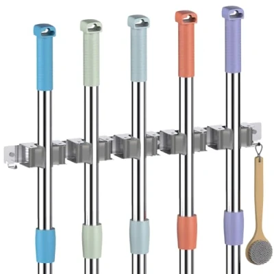 Broom Holder Wall Mounted: Measuring 47cm x 2.5cm x 4.3cm, this wall-mounted broom holder offers 5 slots and 2 hooks, with a load capacity of up to 15 kg. It’s easy to slide the broom in and remove it with one hand. Stainless Steel Material: The mop and broom holder is made of stainless steel, which is more durable than plastic materials. It is waterproof and rust-proof, and can also prevent scratches and deformation more effectively. Enhanced Grip: The silicone pad and anti-slip strips of the mop holder wall mounted further enhance friction and prevent the tool from accidentally falling. Compared with the traditional triangular pulley that will damage the tool, this silicone pad is tool-friendly. Two Installation Methods: You can choose to install it by using glue that will not damage the wall. Or if you want long-term use and more durability, you can choose to use it by drilling holes. We will meet any needs. Efficient Use of Wall Space: The brush holder provides additional hanging space for sundries to achieve the purpose of expanding living space. Perfect for unused space along the walls of kitchens, bathrooms, gardens, garages or mudrooms., Weight: 0.8377565956 pounds, Manufacturer: Oamwrae