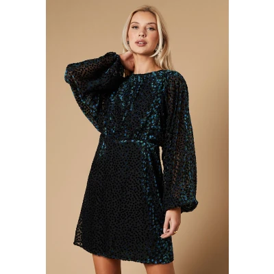 Oasis Womens Devore Long Sleeve Mini Dress Green Size 8 UK