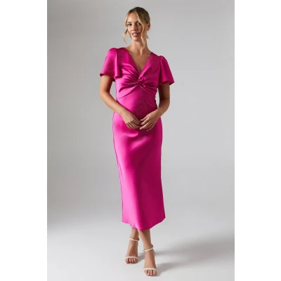 Secret SalesSatin Twist Front Angel Sleeve Midi Bridesmaids Dress