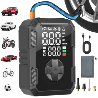 1.Max 150PSI(10.3 Bar):Oasser Tyre Inflator Bike Pump Using a 17mm high-precision cylinder and a long-axis 390-model motor, this air pump can reach a maximum air pressure of 150PSI. It fills a road bike tire that requires high air pressure in just 86 seconds. Combined with the compact size of 13x4.8x9cm, it does not take up space and is practical. A storage bag is given so that you can carry it without any burden. Powerful and easy to carry Bicycle pump for cyclists.Pumps your bike tyre in seconds. 2.One-button Inflation: Oasser Tyre Inflator Bike Pumphave Preset pressure function, set the required air pressure value or budget mode, inflate with one button, and automatically stop after completion, saving worry and effort. The operation is really very simple! The air pressure sensor uses a digital chip, and the tire pressure detection accuracy can reach ±2PSI. It comes with an LCD display, which can clearly display tire pressure real time values, modes and other information, so that you know what is clear at a glance. 3.4 Presets:Oasser Tyre Inflator Bike Pump have 4 preset restart modes, corresponding to custom mode, car, bicycle and ball. Depending on the mode, the adjustable range is from 3-150PSI. When the product is fully charged, it takes 7 minutes to inflate a 0 bar 185/70R14 tire to 30PSI. There is no problem in daily inflating 10 tires in a row! 4.4 Different Air Nozzles:Oasser Tyre Inflator Bike Pump 4 different quick air nozzle conversion head sets allow you to easily adapt to the tire valve without being in a hurry. And equipped with multiple accessories to deal with the inflating of cars, family SUVs, bicycles, balls and other products. Please note that RVs, trucks, trailers, off-road vehicles and other vehicles are not suitable! 5.Bidirectional Input and Output:Oasser Tyre Inflator Bike Pump have type-C interface is more compatible. Thanks to the two-way channel function, it can not only inflate your tires, but also act as your power bank when necessary. Contains LED lighting function, you can handle it easily in the dark and inflate easily. Please note that it is not equipped with a charging head, Manufacturer: Oasser