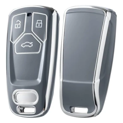 OATSBASF Car Key Case Compatible with Audi A4L A6L A8 Q5 Q7 TTS TT, Seat 3 Button Cover TPU Box (Silver Edge Grey)