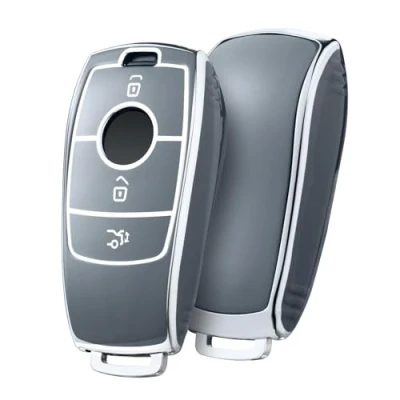 OATSBASF Car Key Case Suitable for Mercedes Benz, Cover E Class S TPU Protective (Silver Edge Grey)