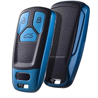 OATSBASF Car Key Cover Compatible with Audi A4L A6L A8 Q5 Q7 TTS TT Leather TPU 3 Buttons Box Shell (Blue Leather)