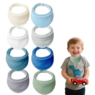 Oaygat 8 Packs Muslin Baby Bibs Bbay Bandana Dribble Drool with Adjustable Snaps and Absorbent Adjust for Newborn Toddler from 0 36 months