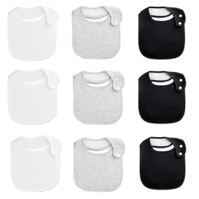 Oaygat 9 Pack Baby Dribble Bibs Waterproof Absorbent Cotton Drool for Boys and Girls Drooling Eating with Snaps