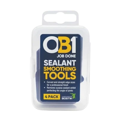 PROFESSIONAL KIT: Complete 4-piece set of sealant smoothing tools designed for achieving a perfect finish on all types of sealant joints. VERSATILE APPLICATION: Specially shaped tools for creating precise angles and smooth finishes in corners, edges, and various joint configurations. EFFICIENT DESIGN: Tools effectively remove surplus sealant while simultaneously shaping and smoothing the joint surface. TIME-SAVING: Streamlines the sealing process by combining multiple finishing steps into one smooth operation. PRACTICAL STORAGE: Compact kit comes in a clear protective case for easy organisation and storage of all four smoothing tools., Manufacturer: OB1