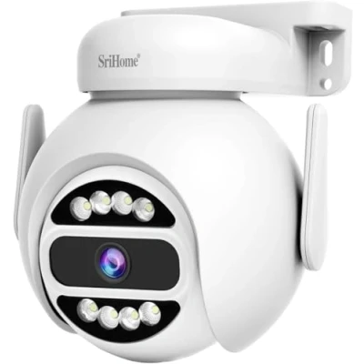 OBA SRIHOME SH047 4MP Dual Band WiFi Network, PTZ Surveillance Camera, Motion Tracking, Night Vision, IP66 Waterproof, 2 Way Audio, Privacy Protection, Indoor/Outdoor Use