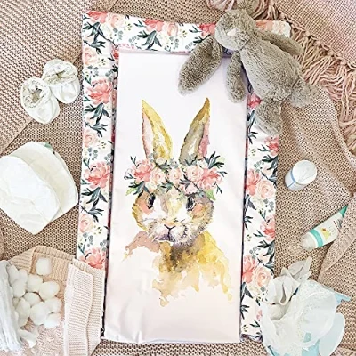CHARMING WATERCOLOUR RABBIT DESIGN – Features a delicate pastel coral watercolour rabbit illustration, adding a whimsical and decorative touch to your nursery. COMFORTABLE – Soft, cushioned 4cm thick surface keeps your baby comfortable during nappy changes. EASY TO CLEAN – Wipe-clean surface ensures simple and stress-free maintenance, perfect for everyday use. GENEROUS SIZE – Measures 76 x 46 x 4cm, providing ample space for babies of all sizes while remaining suitable for standard changing tables and cots. NEUTRAL PASTEL COLOUR – Soft coral tone complements a wide range of nursery décor and is suitable for both boys and girls.