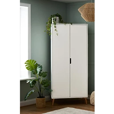Clean-cut Scandinavian design with two-tone colourway Large cupboard space enclosed by two soft close doors Two internal hanging rails One full width shelf