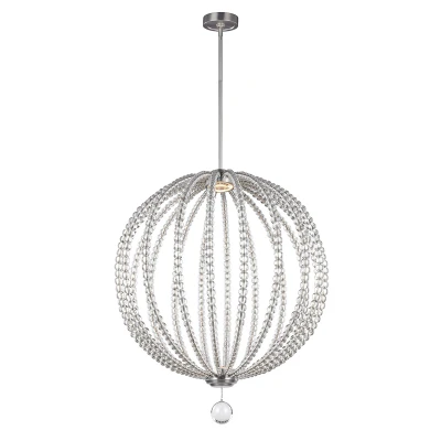 This is a glamorous indoor pendant collection which is sure to add a special sparkle and ambiance to the room. The fittings are available in small, medium and large options, offering the choice for the best pendant for the room. The open frame orb shape is adorned along each bar with clear Rondure beads, which reflect the light as it passes through. The fittings include bottom plates with a hanging sphere and without. The LED light provides plenty of illumination while keeping energy consumption down.