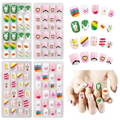 ✨【Nail Art Set】You will receive 3 boxes of girls' false nail tips, each box has 24 pieces of nail tips, and there are 96 pieces in total, there are enough for you to create nail art, that will satisfy your nail. ✨【Safety Material】Children’s false nails are made of non-toxic, odorless, and environmentally friendly plastic. lightweight, breathable, and long-lasting, it will not be a burden to stick on your nails. and is safe for children's nails and skin. ✨【Lovely Design】Children's artificial nails have different pattern designs, sweet and lovely, and give your little girl a dreamlike decoration. ✨【10 Sizes to choose from】There are 10 different sizes of false nail tips for kids, which can be well adapted to different sizes of nails, and suitable for most girls. ✨【Easy to use】Our false nails are press-on and very easy to use, you just need to choose the right size for your nail to stick on and you can see how cute it is after just a few minutes.