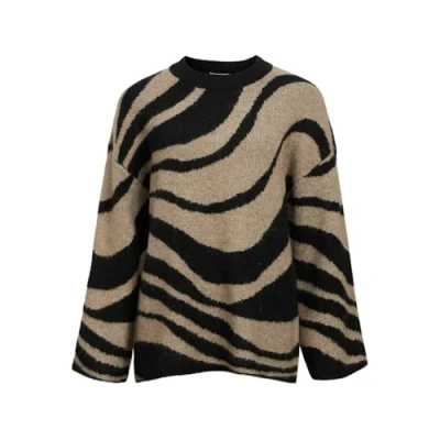Object Female Knitted Jumper, Black/Pattern: Zebra Desert Taupe, S/M