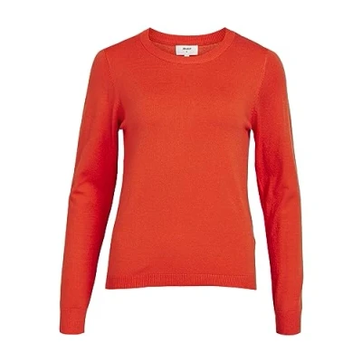 Object Women's Objthess L/S O Neck Knit Pullover Noos Jumper, Cherry Tomato/Detail: Melange, S