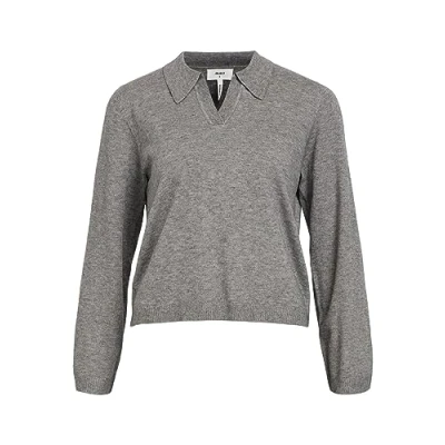 Object Women's Objthess L/S V Neck Knit Polo Noos Jumper, Medium Grey Melange, S