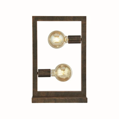 Net Lighting44cm high, the Oblong table lamp has 2 lights, featuring exposed bulbs which can be interchanged to create different looks. This table lamp has a simple yet stylish design, with a rustic brown coloured rectangular frame and matching lamp holders. The Oblong 2 light table lamp is ideal for a living room or bedroom.